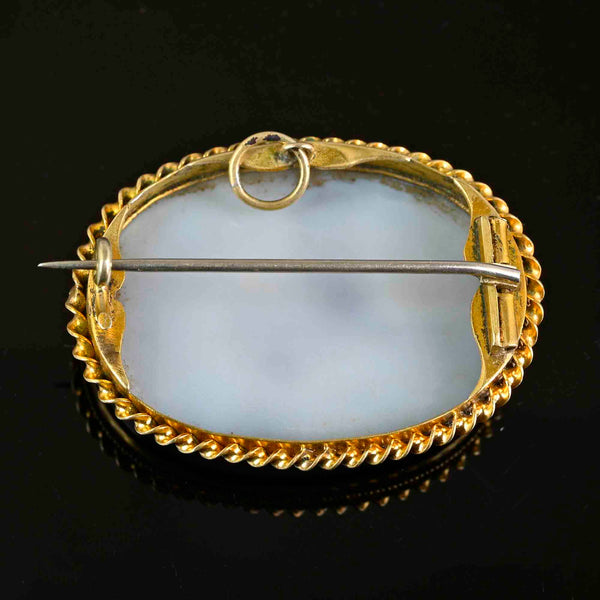 Condition: Very good with no chips to the agate and the heavy gold gilt in fine condition. The pin stem is straight with the c-clasp and hinge functioning as it should.