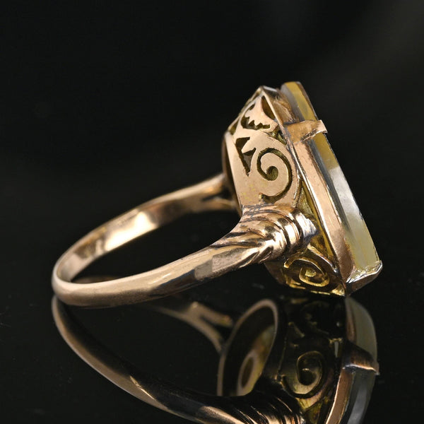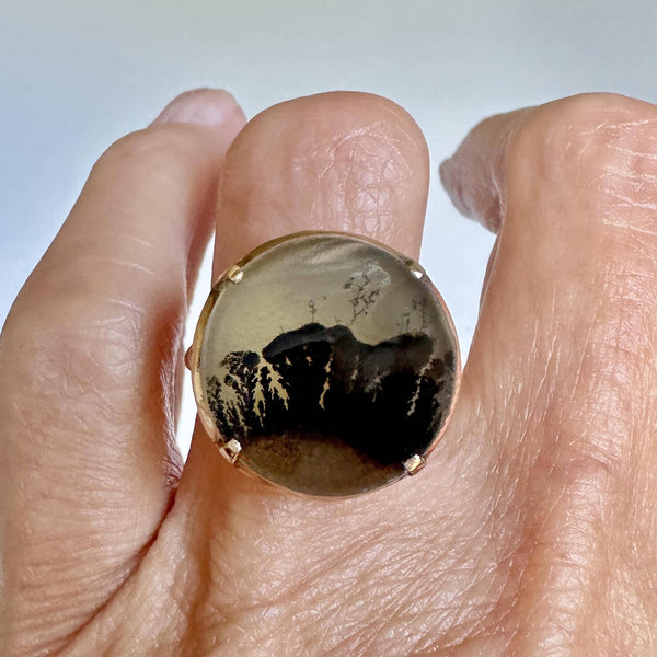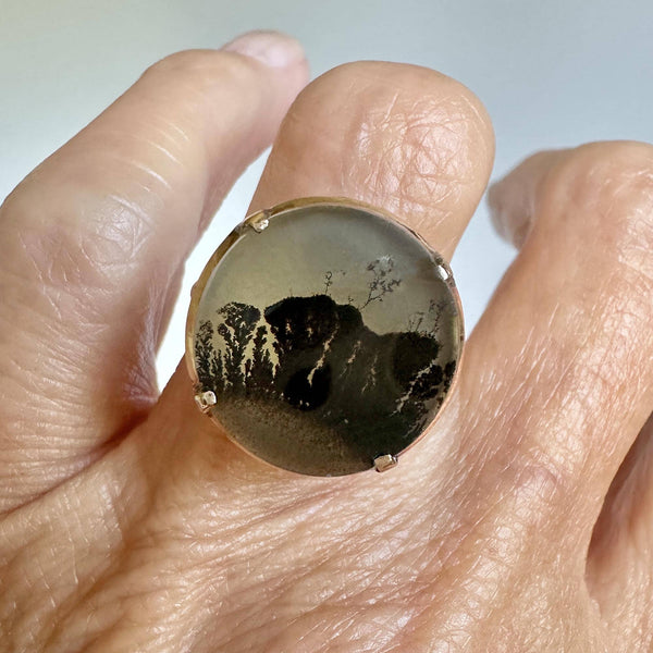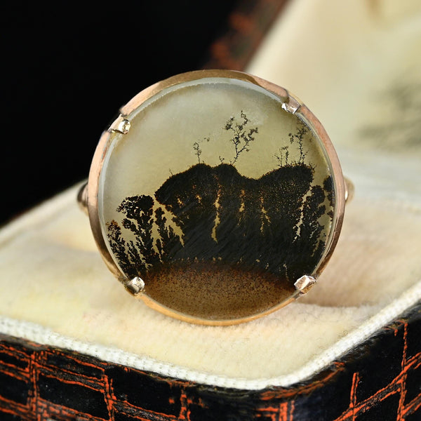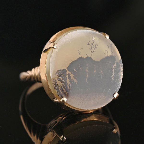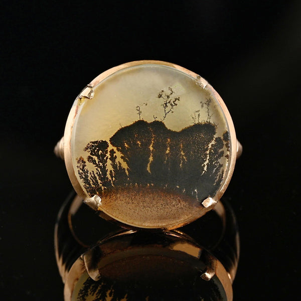 Antique Edwardian 14K Gold Large Dendritic Agate Ring