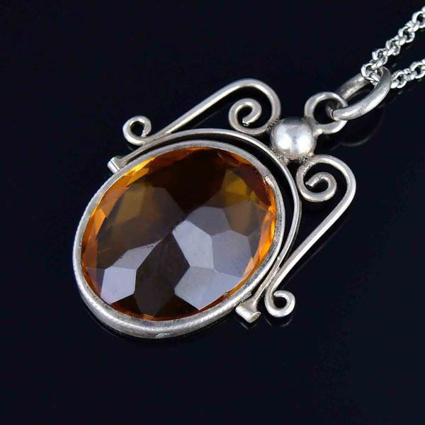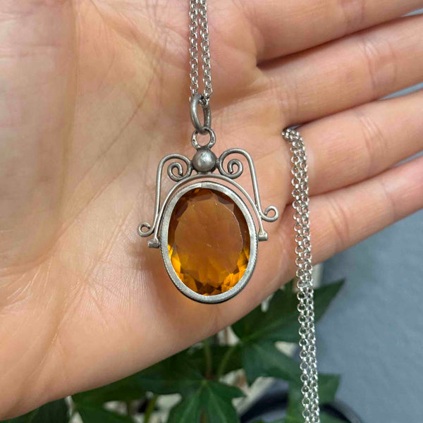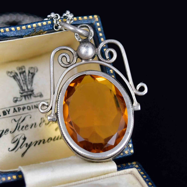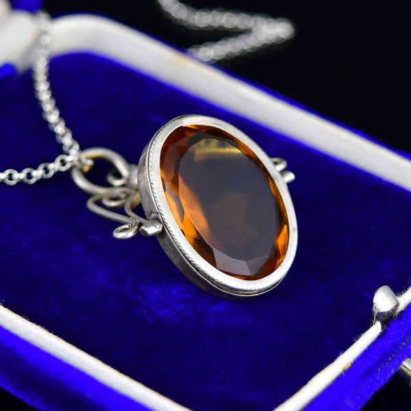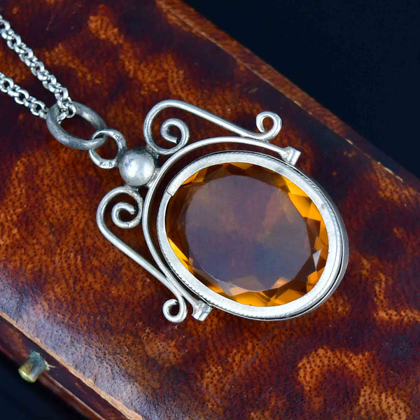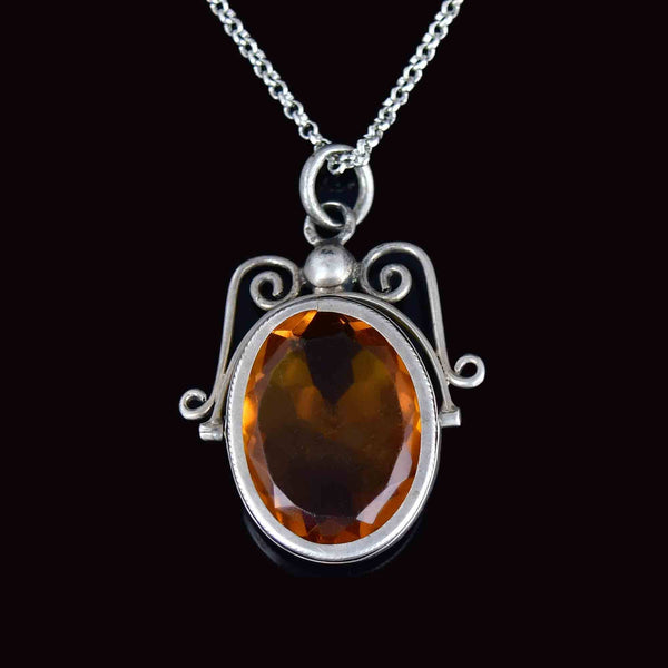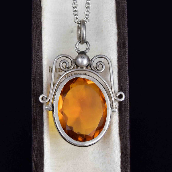 Antique Edwardian Silver Citrine Spinner Fob Pendant Necklace